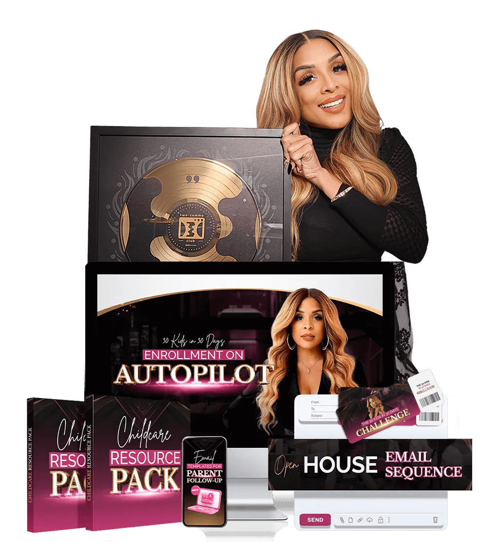 This is the same system I used to enroll 30 kids in 30 days, fill my centers fast, and hit the ClickFunnels 2 Comma Club Award. I went from burned out and overwhelmed to running two thriving childcare centers with a steady flow of parents booking tours every single week. And now you can use the same proven path.